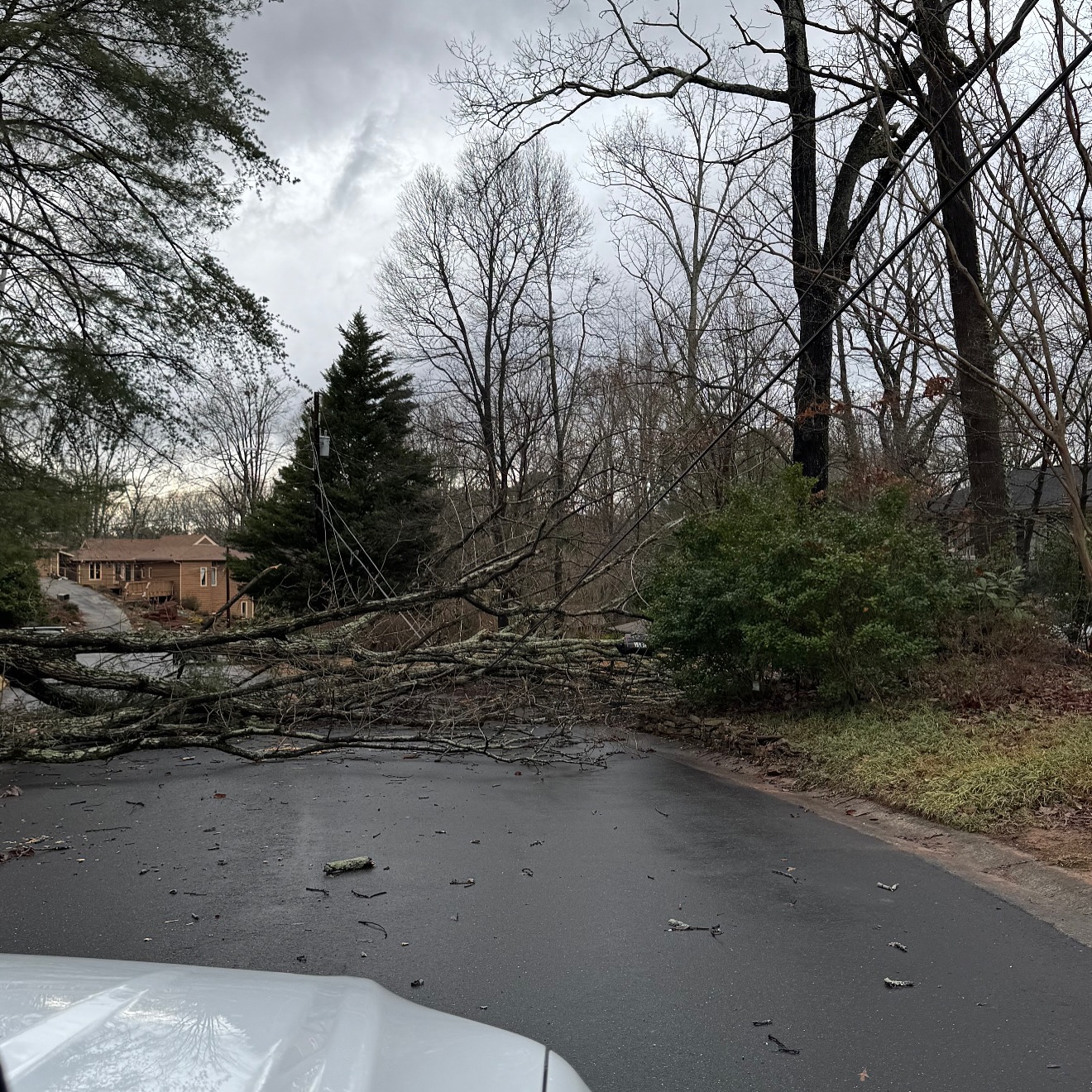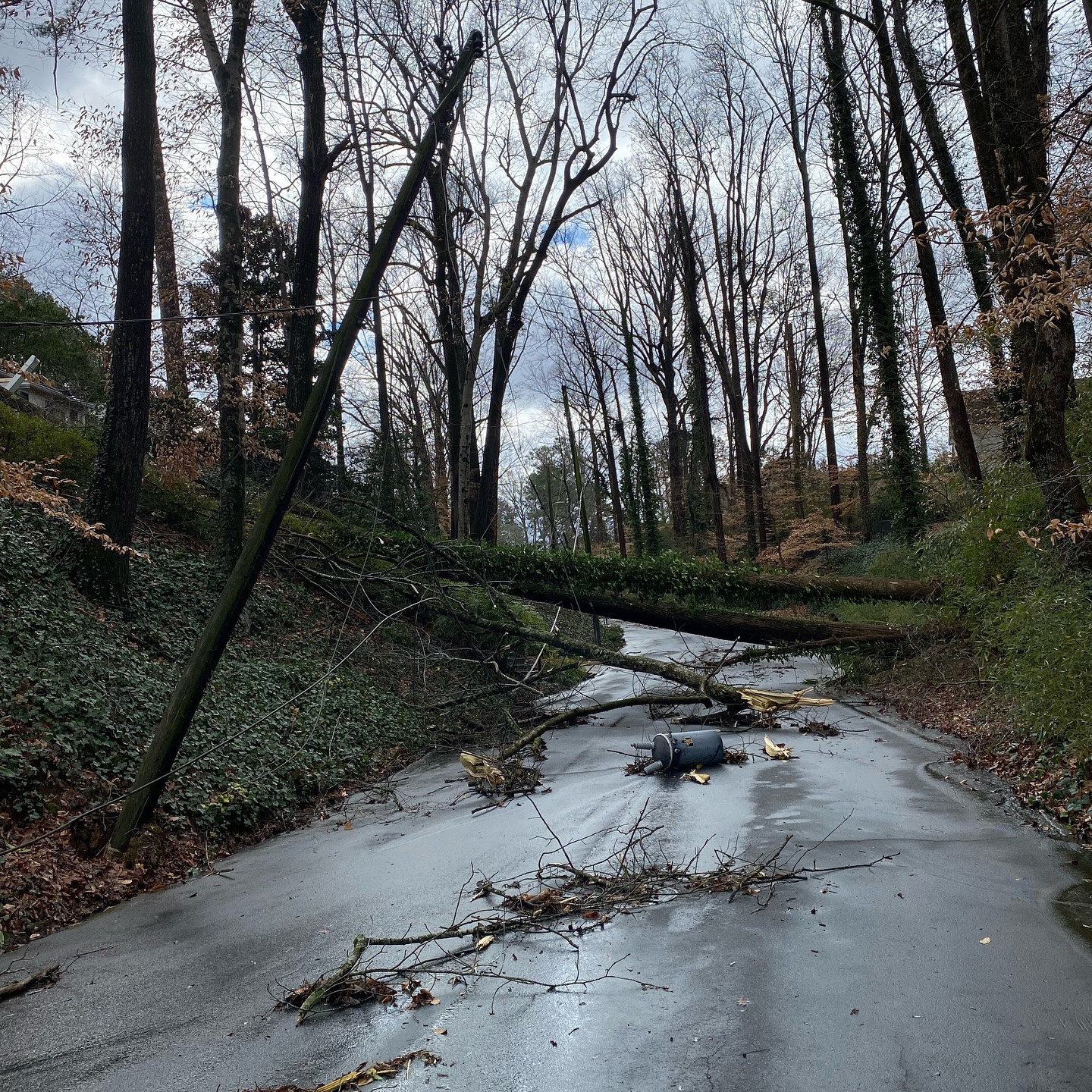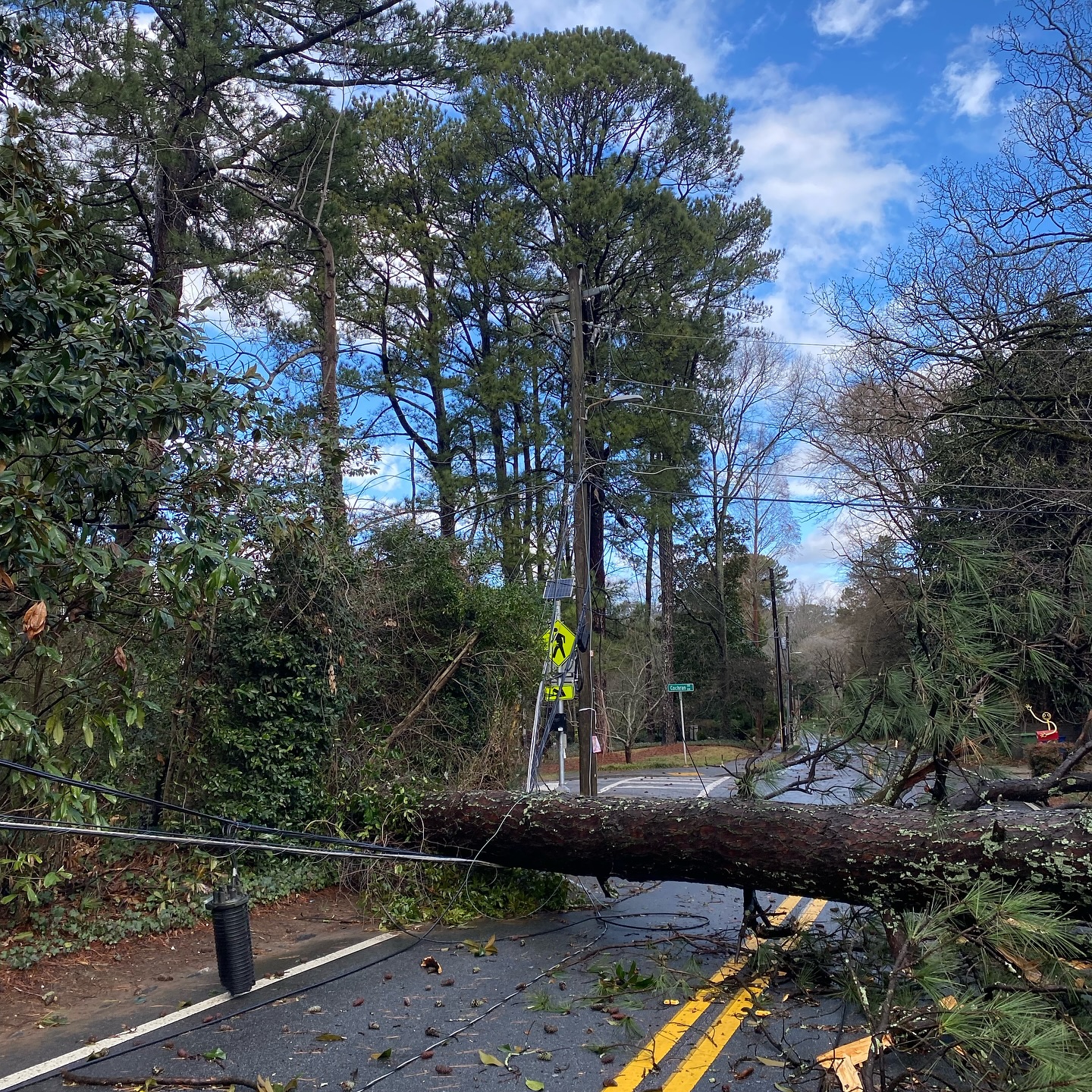 Una persona perdió la vida en Atlanta cuando un árbol cayó sobre su casa durante la tormenta.